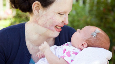 She was burned 80% over her body in a plane crash 5 years ago.